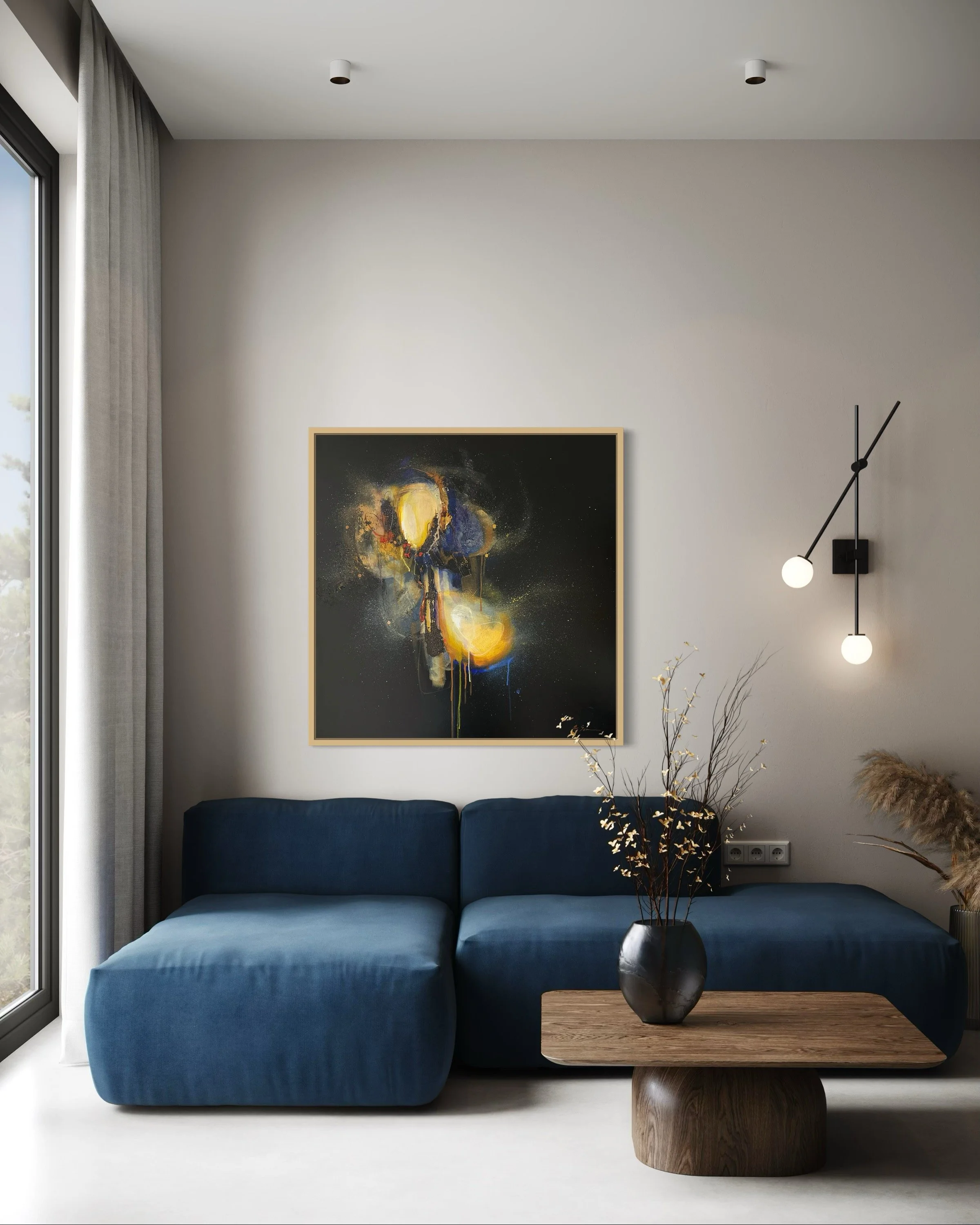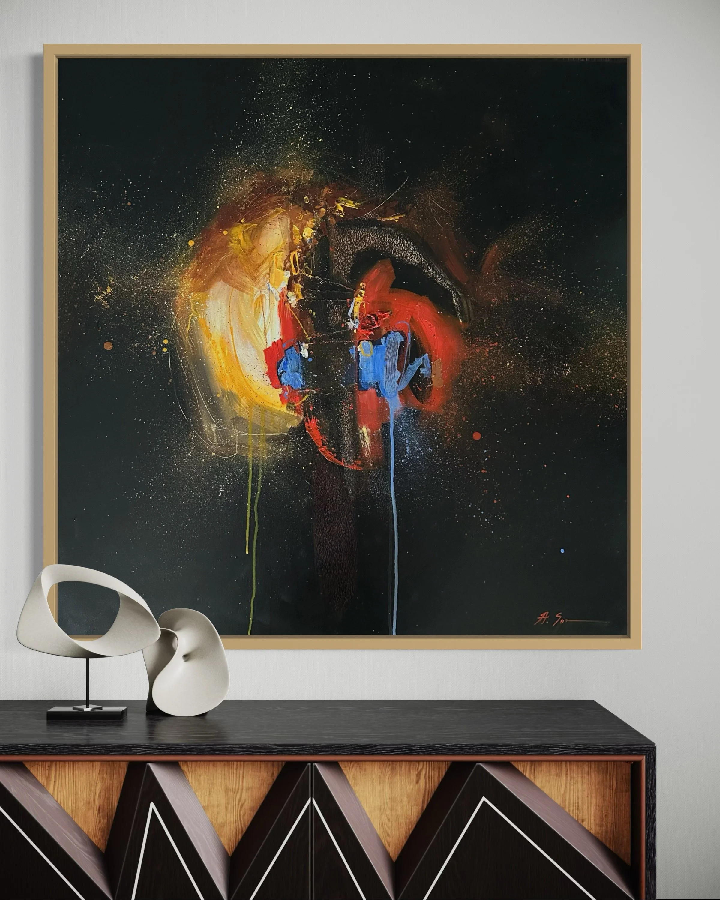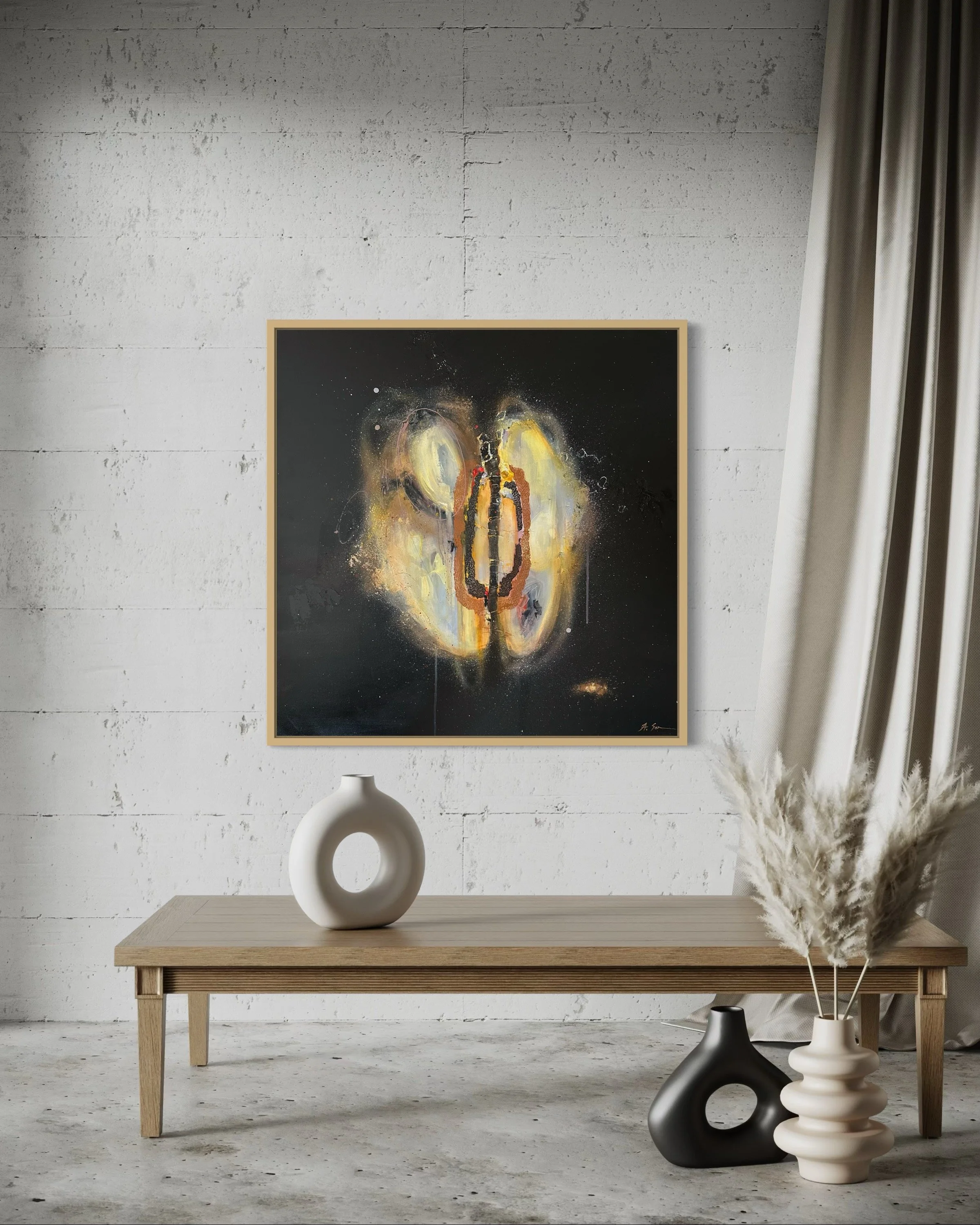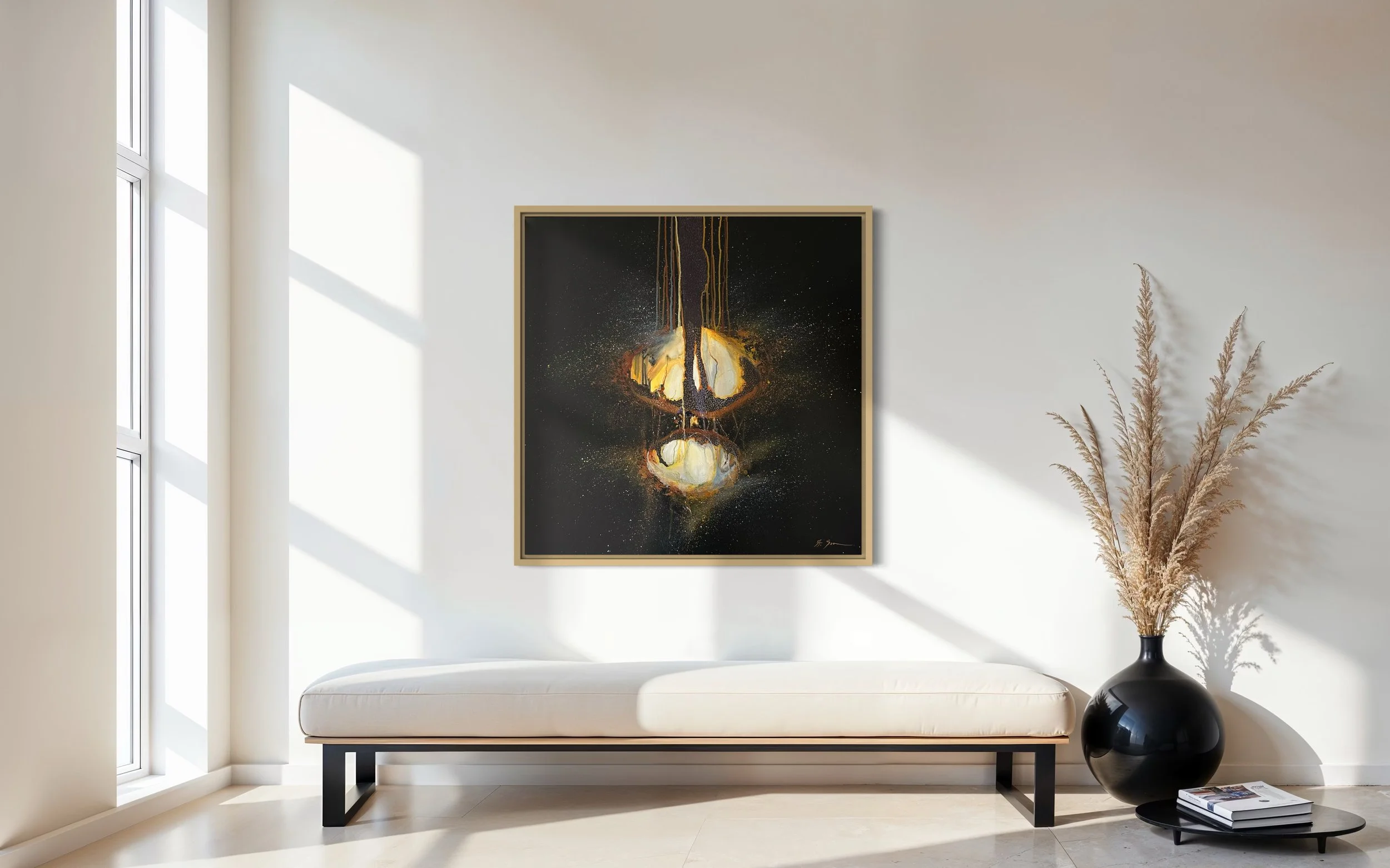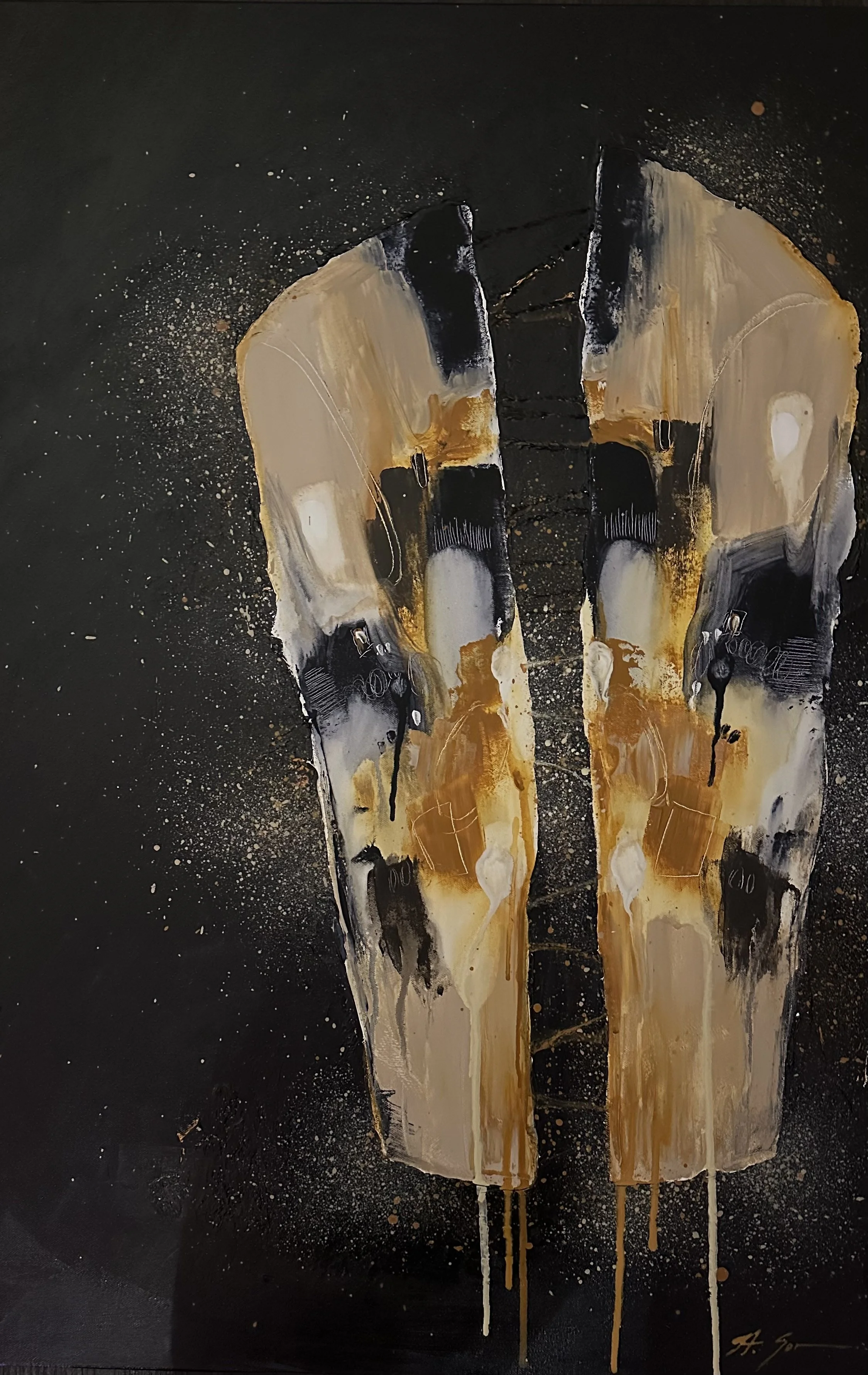 This body of work aims to capture the ethereal pull between souls. I have juxtaposed immersive color and abstract lines with the dispersion of hues to emanate energetic intrigue. The use of a texturing medium pronounces connectivity. The dark base anchors the light in order to give an essence of expansiveness and void in congruence to the vibration of colors. This is to signify how we are nothing and everything at once.