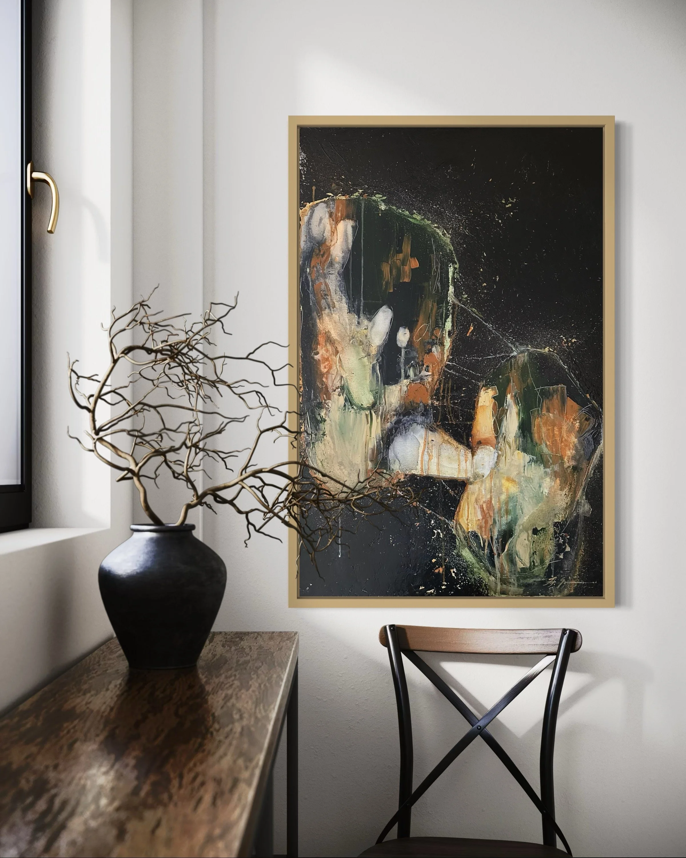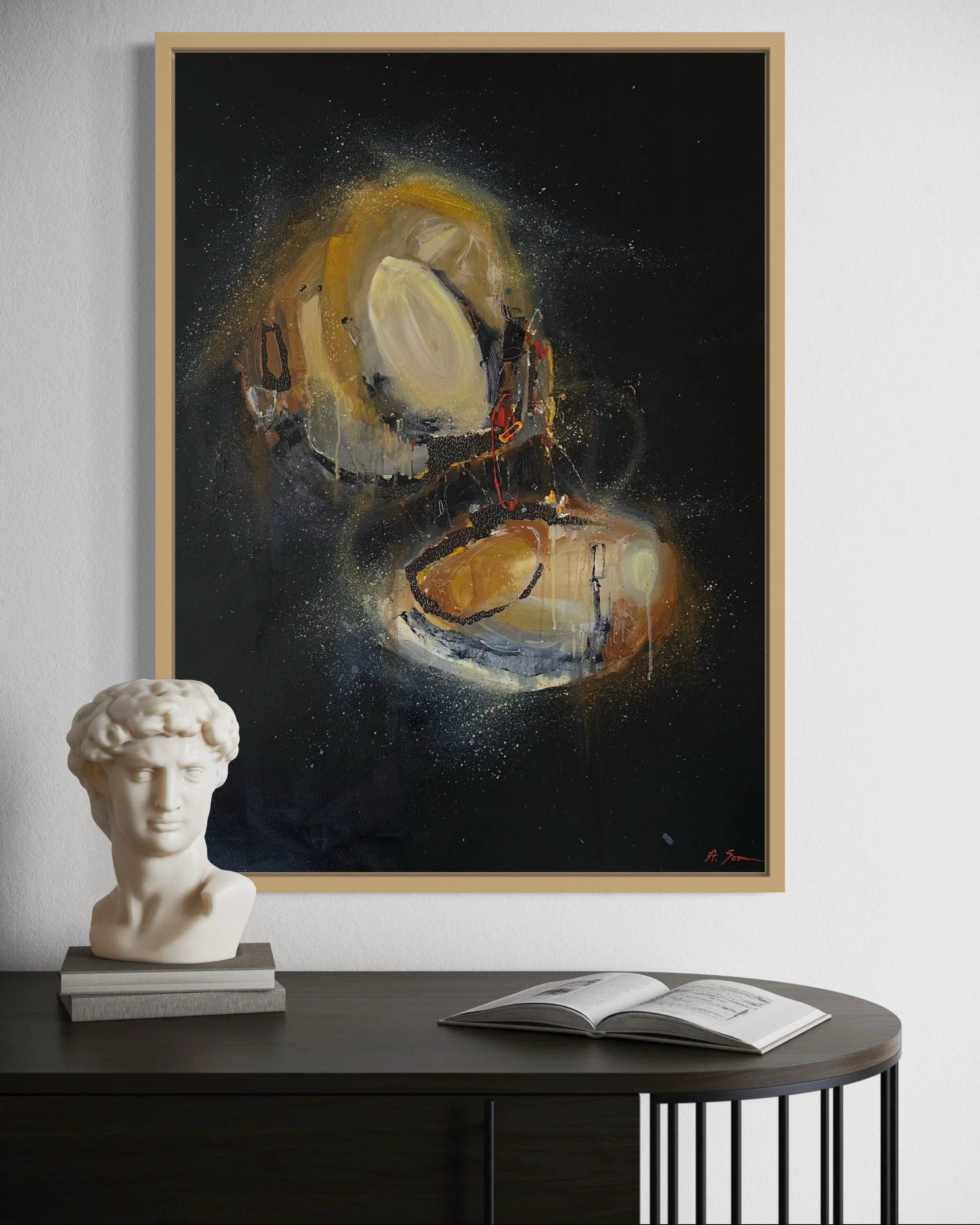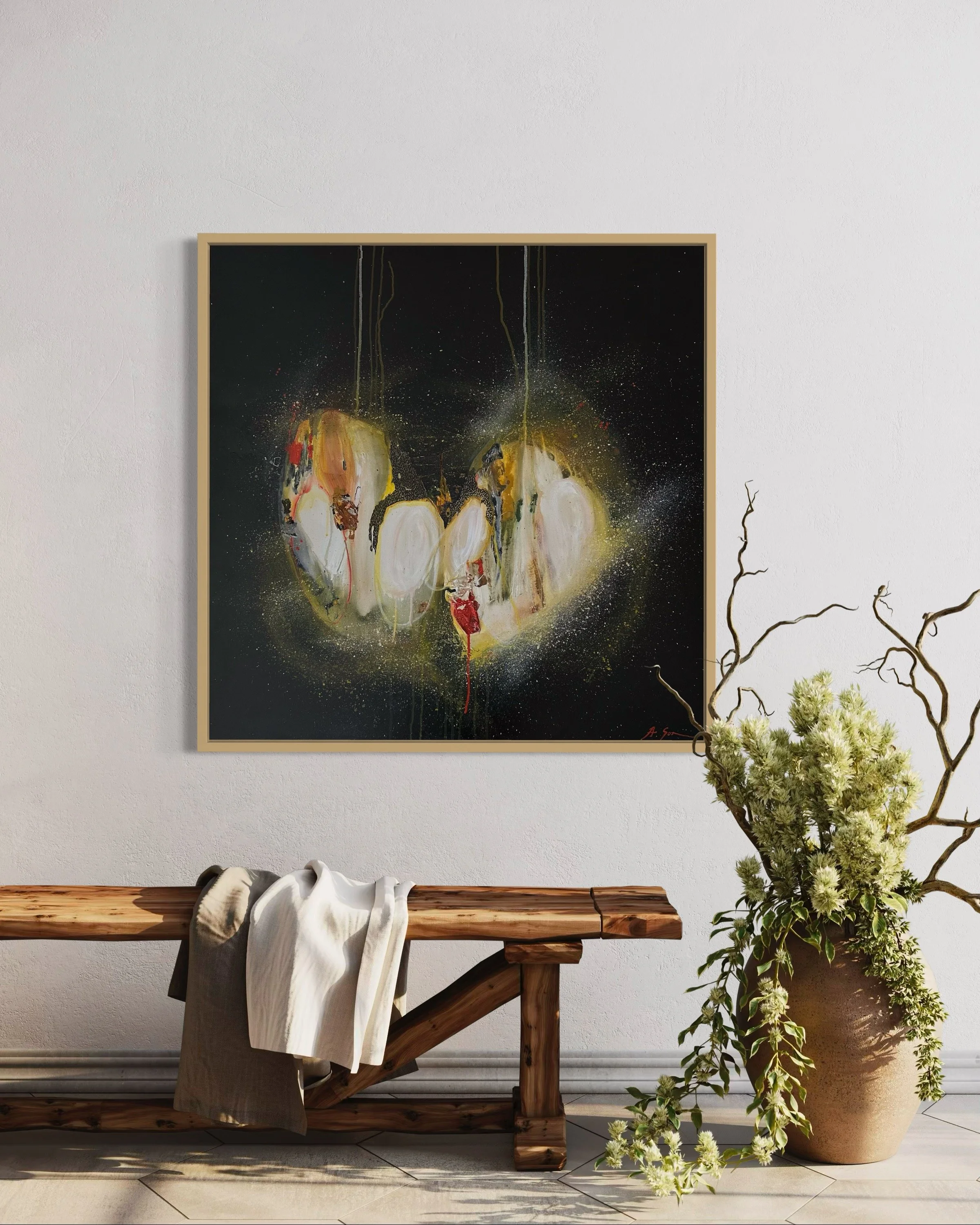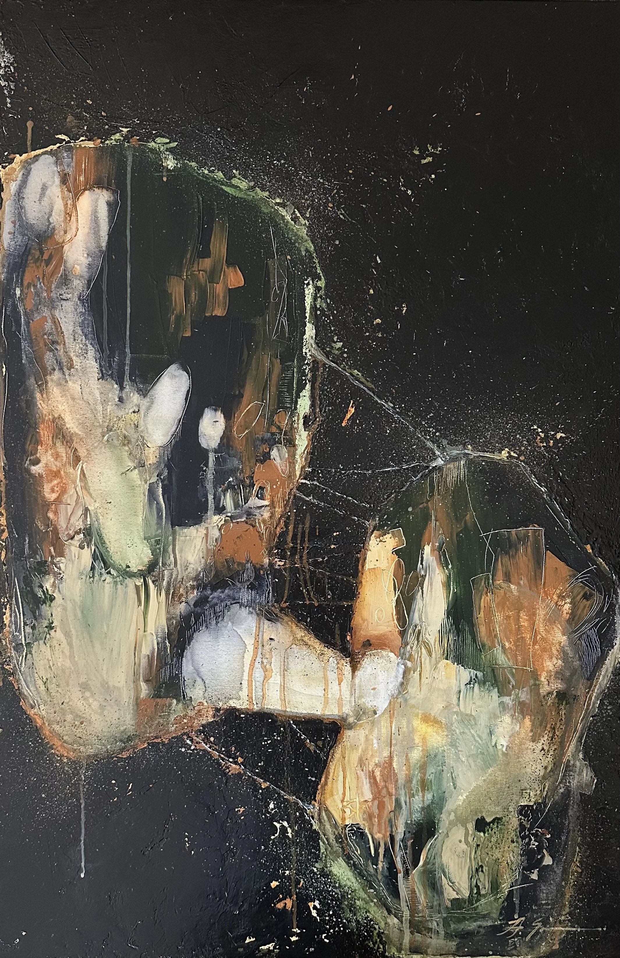 This body of work aims to capture the ethereal pull between souls. I have juxtaposed immersive color and abstract lines with the dispersion of hues to emanate energetic intrigue. The use of a texturing medium pronounces connectivity. The dark base anchors the light in order to give an essence of expansiveness and void in congruence to the vibration of colors. This is to signify how we are nothing and everything at once.